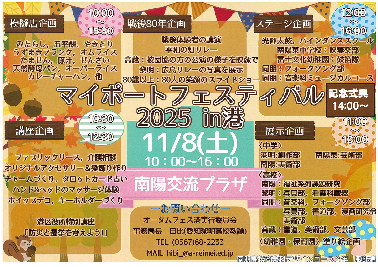 11月082025 2025年11月 【港】〜街とつながる学校〜マイポートフェスティバル2025 in 港 開催日11月8日(土) 会場南陽交流プラザ&南陽中央公園 開場10:00 式典14:00〜14:45 チラシ【PDF】