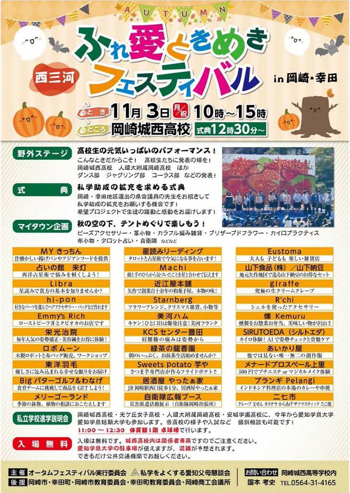11月032025 2025年11月 【岡崎・幸田】ふれ愛・ときめき西三河フェスティバル in 岡崎・幸田2025 開催日11月3日(月・祝) 会場岡崎城西高等学校 開場10:00 式典13:00〜14:00 チラシ【PDF】