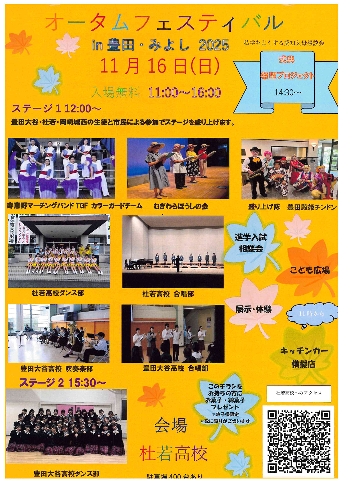 11月162025 2025年11月 【豊田・みよし】2025オータムフェスティバル in 豊田・みよし 開催日11月16日(日) 会場杜若高等学校 開場11:00 式典14:30〜15:30 チラシ【PDF】
